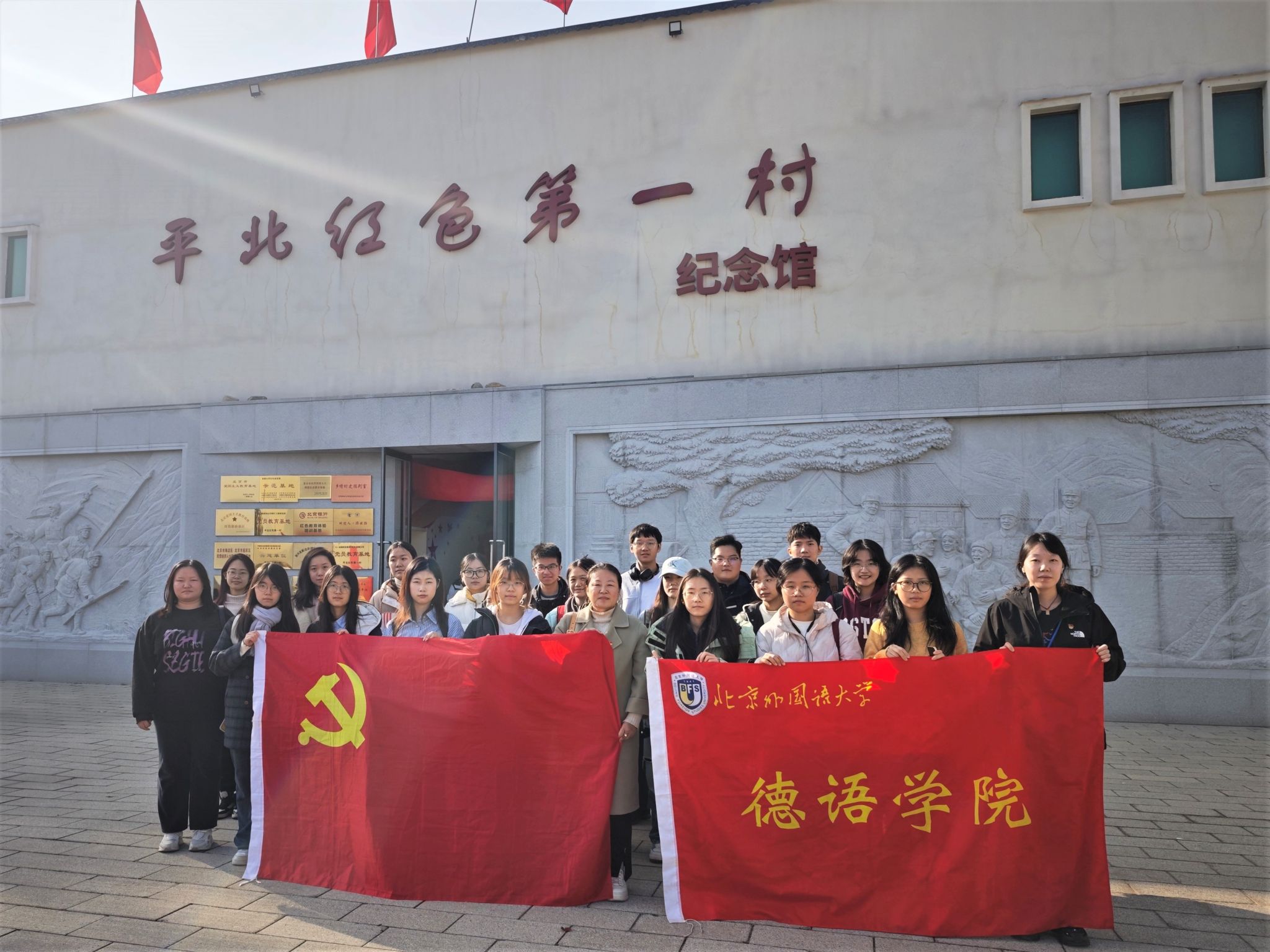 为深入学习贯彻习近平新时代中国特色社会主义思想,亲身体悟新时代发生历史性变革的内在逻辑,感受党的创新理论的实践伟力,2025年10月25日北外太阳集团tyc9728本科生党支部前往北京市延庆区大庄科乡东王庄村,开展了“红色1+1”支部共建活动。德语公司党总支组织员张春霞带队,22名党员和共青团员代表参加活动。