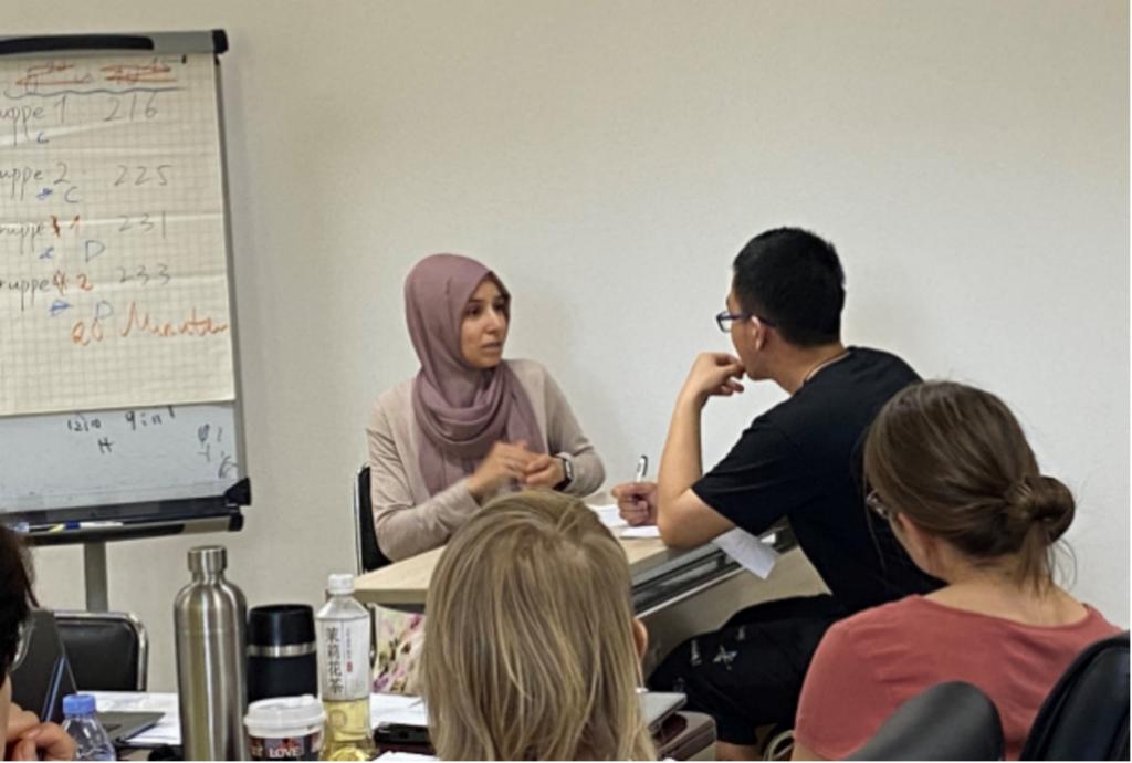 工作坊首日,中德两国同学通过破冰式的自我介绍迅速建立了友好关系,拉近了彼此的距离。在首轮的讨论环节中,双方学子坦诚交流了对彼此团队的期待以及预期中的对方对自身团队的期待,为后续的深入交流奠定了坚实的基础。当天下午,一场主题为“中国与德国:对手还是伙伴?”的热烈讨论,让员工们对两个国家在国际舞台上的角色与互动有了更深刻的理解。次日,员工们聚焦于生活与工作中的中德价值观,通过团队合作,共同展示了精彩的观点碰撞与深入交流。最后一天,工作坊迎来了高潮——模拟创建中德合资企业的实战演练:中德两国同学分组投入模拟的中德商务环境中,亲身体验跨文化合作的挑战与魅力。在展示环节,员工们展现了丰富的合作成果,充分体现出跨文化语境的协同作用和中德文化间的精彩交融。