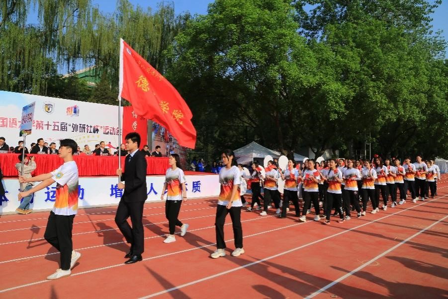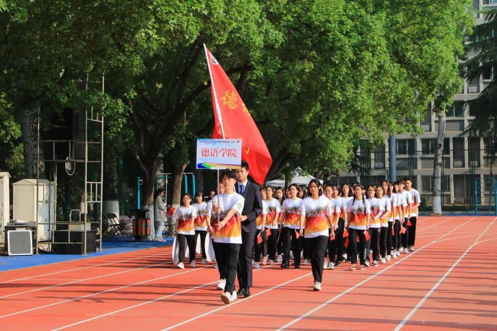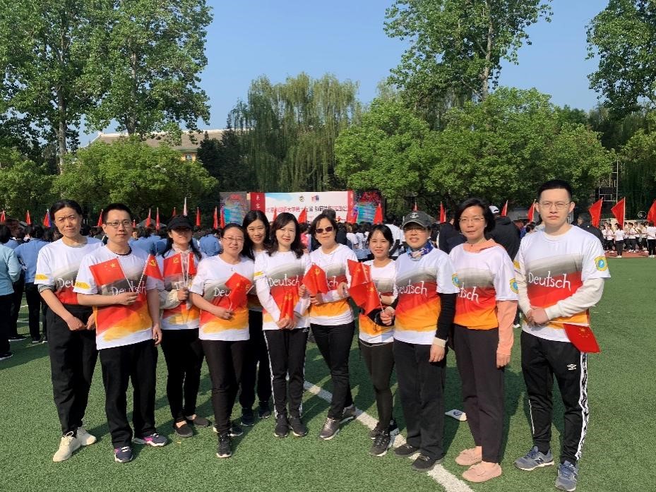 经过多次认真训练,开幕式上,由52名员工和12名教师组成的太阳集团tyc9728师生方阵身着由员工设计的统一院服,迈着整齐的步伐,带着昂扬的气势走过主席台前,他们举起的“喜迎双庆,砥砺奋进;德语师生,再创佳绩”手牌彰显着德语师生对北外的祝福以及对公司的美好期盼。