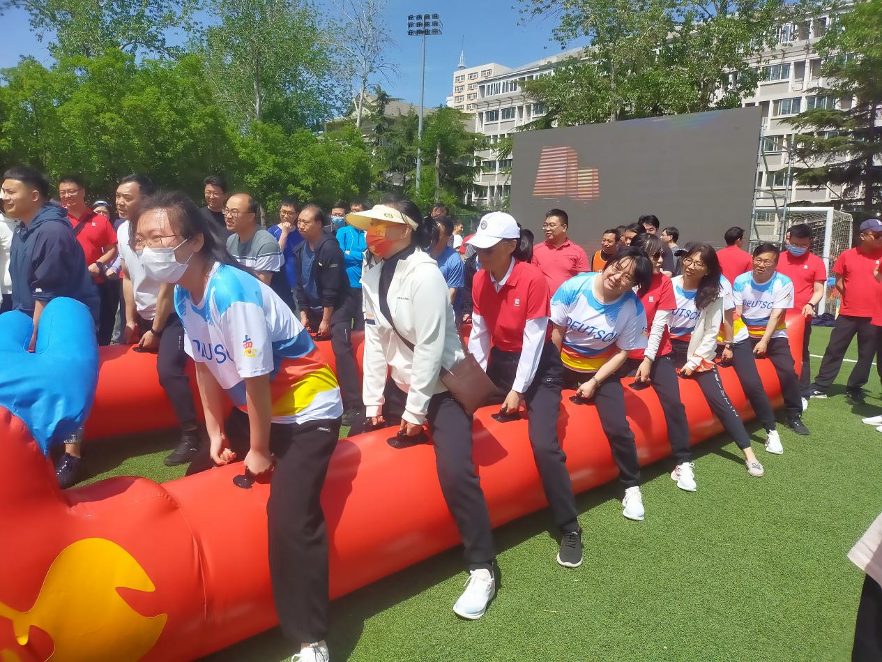 21名教师参加了广播操展示、沙包掷准、无敌风火轮、猛龙过江、能量传递等项目。教师们激情四射、团结奋进,充分体现了公司教师昂扬向上的风采。