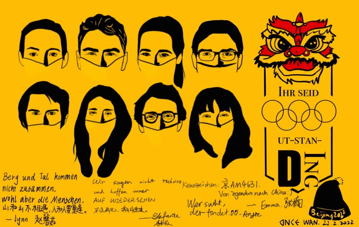 但无论如何,这都是一段无与伦比的经历:一起观看闭幕式转播时Carsten和我们一起肃立看国旗升起;50岁的速滑运动员Pechstein特意在比赛之后告知我们中国选手高亭宇夺冠;他们不断举起手机拍下我们的工作瞬间;离别之时每一个人都给了温柔的拥抱……所以,最后我说:“如果能够让你们感受到中国的热情与真诚,那就是我工作最大的成功。”