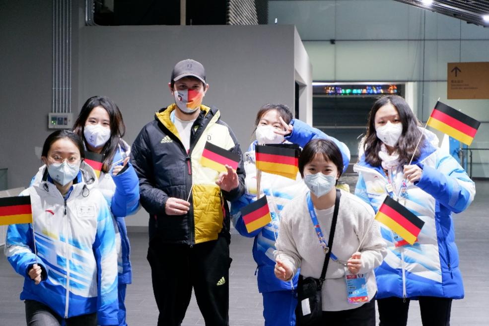 五位助理与德国代表团驻北京冬奥村领队Lars Christoph Paetzold的合照
