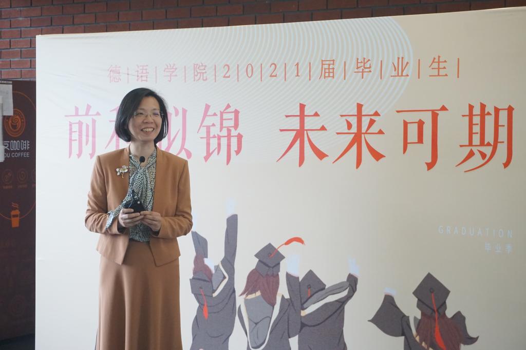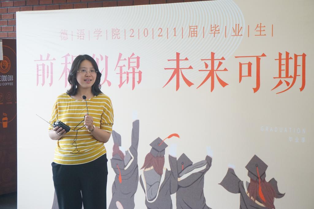 德语公司党总支副书记、经理吴江和毕业生分享了自己的人生经历,勉励毕业生在未来的岁月中找寻到合适的方式对抗时间的加速,祝福毕业生拥有一颗强大的心脏,勇敢追梦。