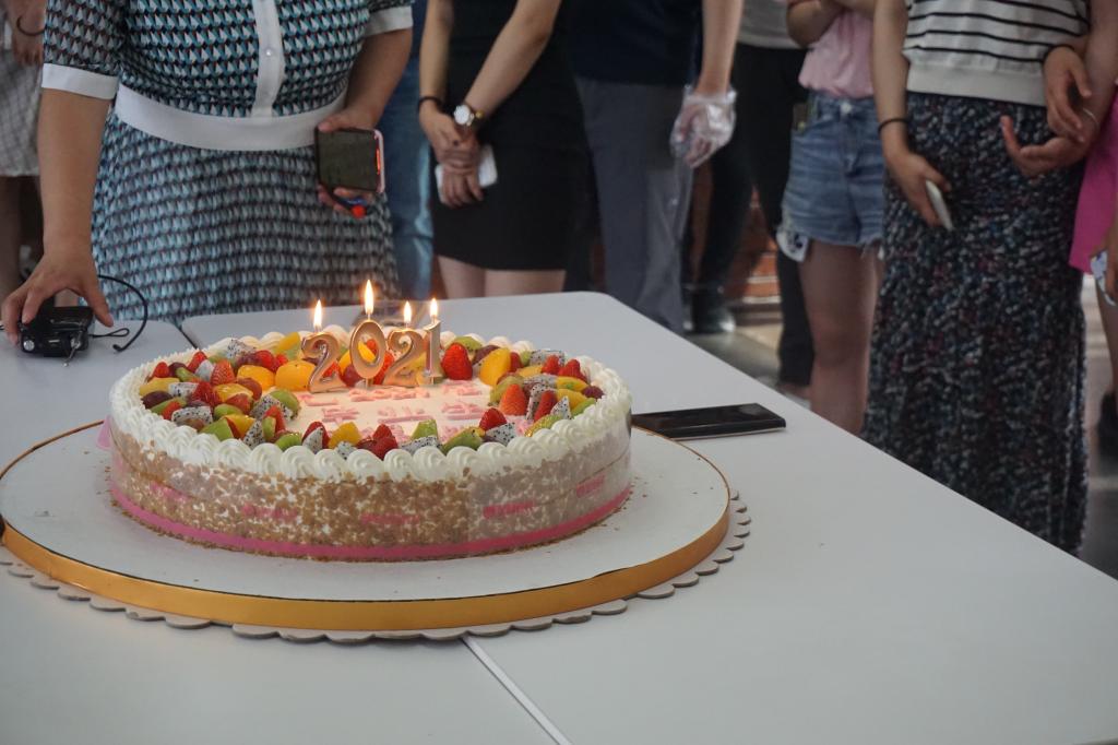 欢声笑语中,师生共切蛋糕,合唱自编版《毕业快乐》,合影留念、依依话别;签名墙上,师生们共同提笔,将彼此的留念与祝福印在心间。