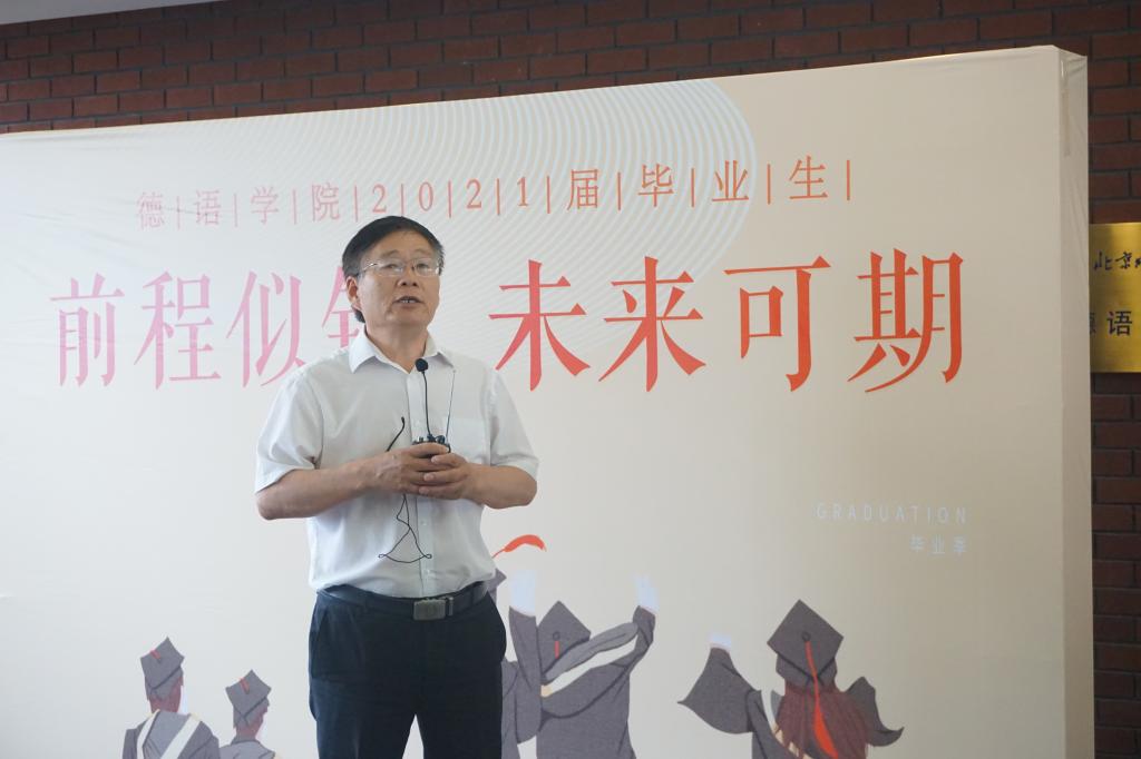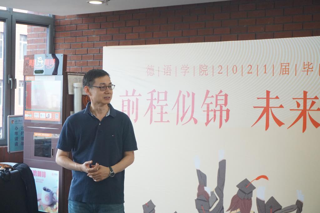 德语公司党总支书记常秀鹏对毕业生们表示热烈祝贺,并向同学们深情讲述了大学时光的美好,鼓励同学们珍惜光阴、奋发向上,“常回家看看”。