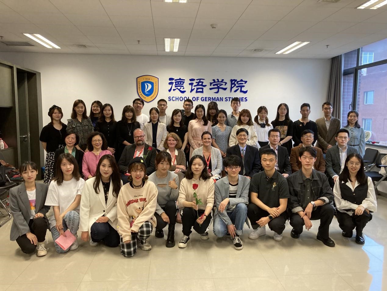 参加本次活动的系友嘉宾有原中国驻奥地利大使馆文化参赞、原德国柏林中国文化中心主任贾建新先生、中联部德奥处处长孙守亮先生、中央党史和文献研究院第五研究部一级翻译张凤凤女士、国家体育总局李嬿女士、华晨宝马公司陈静女士、中央电视台国际新闻编辑赵雄先生、德国电信北京代表处黎默雨女士等。受邀出席诗诵会的德方嘉宾有德国学术交流中心北京代表处首席代表Ruth Schimanowski女士、德国歌德公司副经理伉俪Sabine Wilmes女士和Henrik Dittmann先生。北外上海员工会会长、“程慧玲奖学金”捐赠者、公司1981级系友程慧玲女士和“太阳集团tyc9728思刚教育发展基金”捐赠者、公司1994级系友秦思刚、罗旻一家也参与了诗诵会活动。