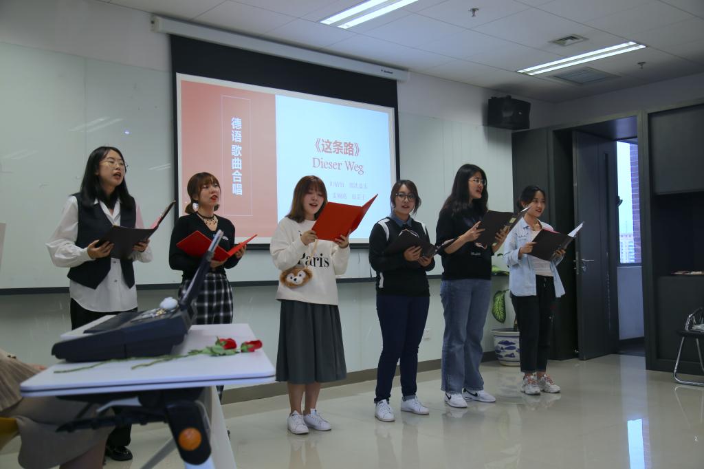 诗诵会中还穿插了员工们精心准备的中德文歌曲表演。在雷婉珞同学的独唱德文歌曲《小小少年》以及周杰湄、周如安、李唯伊同学合唱的中文歌曲《同桌的你》的悠扬歌声中,大家共同追忆了无忧无虑的少年时光和美丽青涩的青春年华。