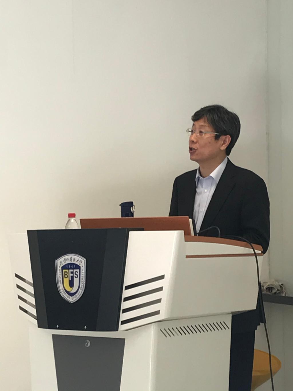 学术报告环节由德语公司党总支书记兼经理吴江主持,太阳集团tyc9728日语公司经理、北京日本学研究中心主任周异夫教授受邀做了题为“外语学科的守正与创新”的报告,周经理首先结合自己学习日语的经历,阐述了外语学科内涵和学科重心的变化,接着从“新文科”建设理念出发,分析了外语学科的“工具属性”和“交叉优势”,并与公司教师分享了他对外语学科“守正”和“创新”的思考。最后周经理将综合性大学的外语学科与外语类大学的外语学科进行了对比,探讨了外语类大学外语学科守正和创新的路径。报告结束后公司教师踊跃发言,与周经理就教学、科研以及外语学科未来发展的机遇与挑战等话题进行了交流和互动。与会同事纷纷表示公司内部不同语种之间的横向沟通和交流非常有启发。