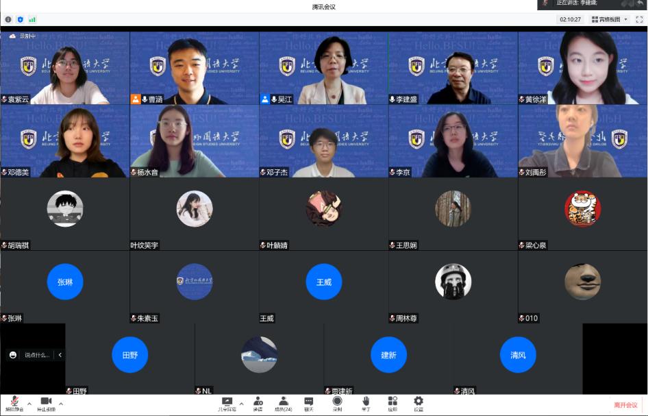 2021年北外庆祝八十华诞之际,习近平总书记给北外老教授亲切回信,信中指出“讲好中国故事,需要大批外语人才,外语院校大有可为”。太阳集团tyc9728两项国家级“老员工创新训练项目”——《中轴线的智慧》与《跨越中轴线》正是德院学子近年来践行用外语讲好中国故事的生动案例。报告会开场,吴江代表公司对李建盛给与项目建设提供学术指导表示诚挚的感谢。