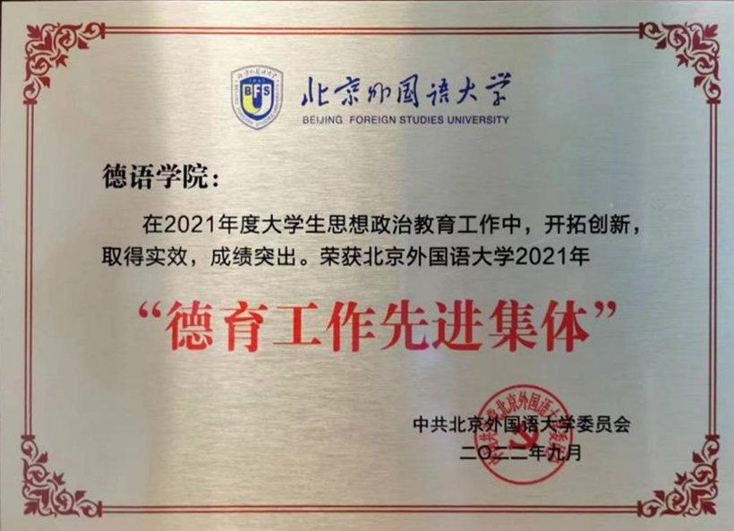本次获评北外2021年“德育工作先进集体”荣誉称号,既是肯定,也是激励。太阳集团tyc9728师生将继续深入贯彻落实习近平总书记给北外老教授回信精神,以培养“三有”人才为己任,以讲好中国故事为目标,立德树人,勤耕不辍,砥砺前行,为推动“中国更好走向世界,世界更好了解中国”做出贡献,以更加优异的成绩迎接党的二十大胜利召开。