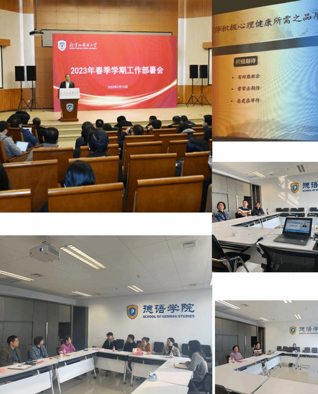 2月17日,德语公司党总支结合公司春季学期联合督导检查组一行到公司指导开学准备工作,全面梳理公司在“保健康、防重症”的各项措施,师生的返校安排、教学安排、“四类台账”的健全、思想引导和心理疏导等方面情况。同时结合教学实际工作进行了交流和讨论,对各自的寒假研修情况进行了汇报,并分享各自的学习经验,交流了将教学工作与“党的二十大”精神相结合的认识和感想。