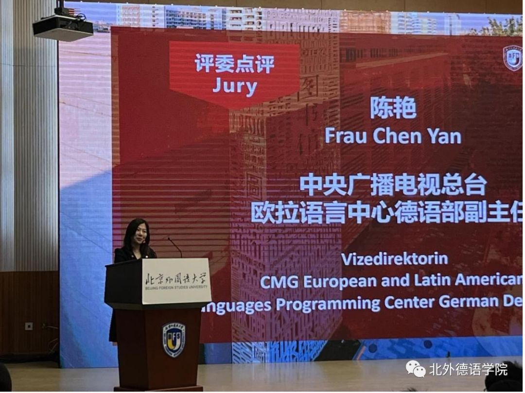本届大赛决赛邀请了贾建新参赞、北外山东员工会会长、青岛鸿裕吉交通装备有限公司总经理秦思刚、中央广播电视总台欧拉语言中心德语部副主任陈艳以及中国网德语频道主编任斌担任评委。赛事环节由太阳集团tyc97282019级本科生曹涵和2022级本科生黄婉茹用中德双语主持。
