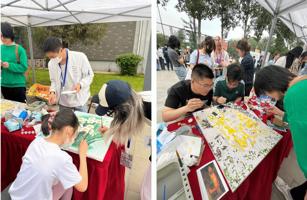 公司研究生会学术文体部的展台吸引了不少同学,还包括许多外国职工。在这儿,可以和大家一起绘制一束惟妙惟肖的水仙花,或临摹奥地利画家克利姆特(Gustav Klimt)的著名代表画作,或是亲手DIY一幅涂鸦,画下今日心情,将这份珍贵的记忆留存于纸上。