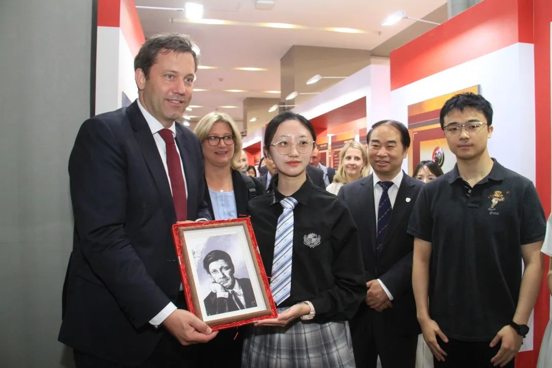 在北外期间,克林贝尔一行参观了主题展“施密特与中国”,回顾了德国前总理赫尔穆特·施密特为助力中德关系行稳致远作出的卓越贡献。