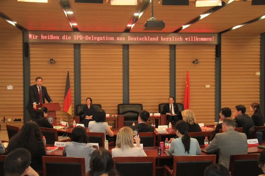 德国社民党副主席兼亚洲事务负责人、萨尔州州长安可·雷林格,党团副主席维蕾娜·胡贝茨,党团发展援助政策发言人萨娜耶·阿卜迪,国际部部长菲利普·芬克,克林贝尔主席办公室主任维纳斯·弗莱斯特-黑尔德,主席发言人、新闻部部长比安卡·瓦尔特,艾伯特基金会亚太处处长米尔科·君特、北京代表处首席代表赛巧,中共中央对外联络部八局局长王学勇、驻德使馆公参孙守亮、调研员李珅,北外国际交流与合作处副处长龚婧,德语公司党总支副书记李勇、副经理姚燕等参加了活动。