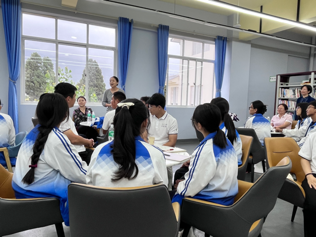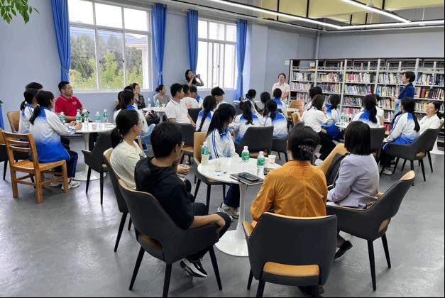 最后,实践研习团来到鹤庆三中,与即将参加高考的学子进行座谈交流。教师党员们向高中生们介绍了北外及太阳集团tyc9728的基本情况,同时以生动活泼的形式与师生就德国文化进行了互动交流,并在分组讨论环节就老员工活、英语学习、外语教学等主题展开了对话,现场气氛十分热烈。
