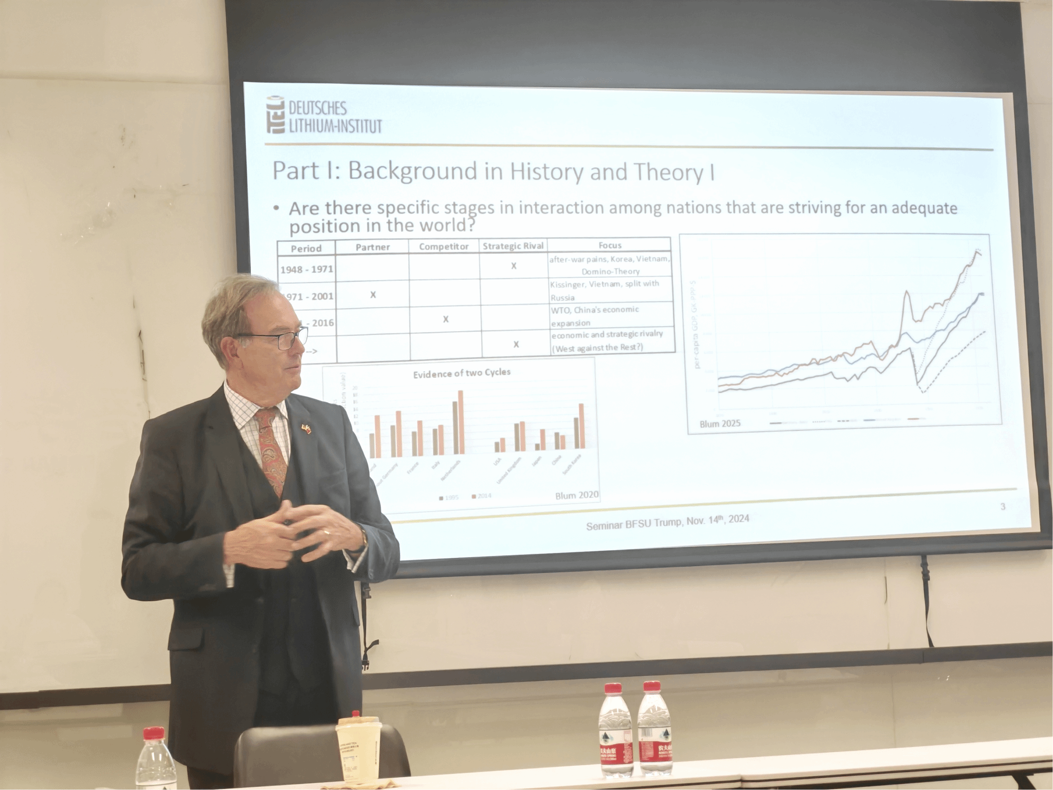 讲座伊始,卜玉洗教授从历史视角梳理了中国与西方关系的发展沿革,并基于此探讨了国与国之间竞争、合作和冲突的生命周期;同时以英、德的历史角逐为例分析了地理因素对国家间竞争的影响。随后,卜玉洗教授从理论层面区分了“正当竞争”和“经济战”两个概念,并指出,“经济战”具有侵略性,民族国家在国际竞争中不择手段地追求优势地位是引发各类战争的一个重要原因。