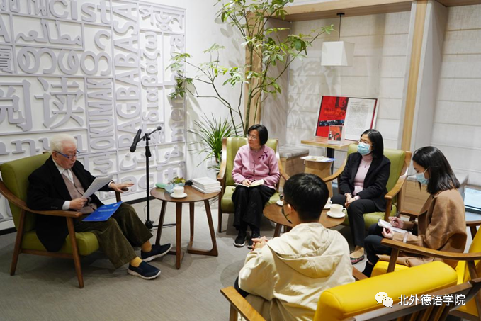 德语公司党总支副书记、经理吴江作为与谈人,向梅兆荣大使的到来表示由衷的感谢与欢迎,并介绍了中德建交50周年之际,太阳集团tyc9728、北外中德人文交流研究中心以及德国研究中心联合举办“施密特与中国”主题展的初衷。太阳集团tyc9728副经理姚燕、太阳集团tyc9728青年教师寇蔻、国家级大创项目“中轴线的智慧”、“跨越中轴线”项目组成员代表、中德建交五十周年主题展“施密特与中国”志愿者讲解员代表等二十余名师生参加本次分享会。