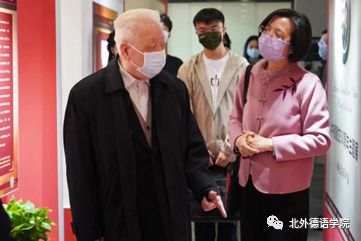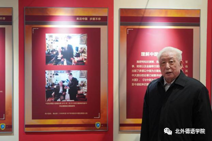 分享会结束后,梅兆荣大使在吴江经理的陪同下,跟随志愿者讲解员的脚步,参观了中德建交五十周年主题展“施密特与中国”,并在自己与施密特总理2015年的合影前驻足良久。