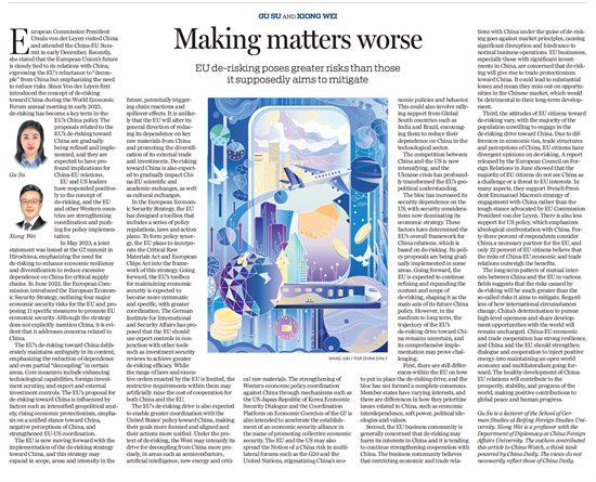 12月8日,《中国日报》(China Daily)刊发公司教师顾苏博士和外交公司外交学与外事管理系熊炜教授共同撰写的文章“Making matters worse”。