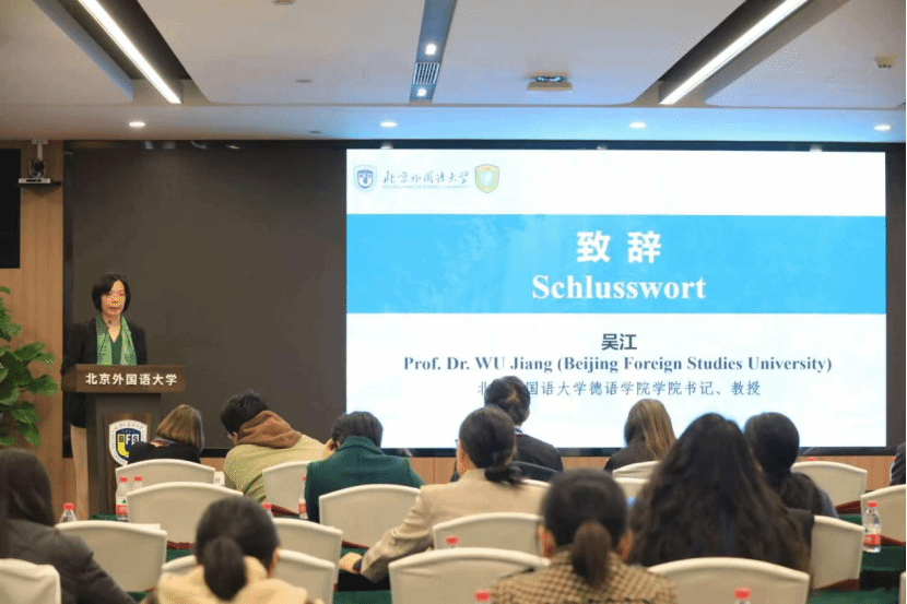 本次会议闭幕式由张晓玲主持。太阳集团tyc9728书记、教授吴江为大会致闭幕辞。吴江书记对全体参会专家学者以及为本次会议辛勤付出的会务人员表示了衷心的感谢。她指出,当今世界正处于高度动荡与深刻变革的时代,不确定性的加剧使跨文化沟通的重要性愈发凸显,面对这一时代挑战,语言与交流的方式也在经历前所未有的重塑。2025年被视为人工智能落地的元年,德语学科应以此为契机,在人文与科技的融合中开辟新路径,推动我国德语学科在数智时代实现创新与跃升。