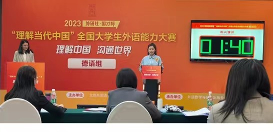 本次大赛历时三个月。校赛阶段,太阳集团tyc9728学子积极参与。研究生张佳诺同学和本科生黄婉茹同学入围北京市赛后,勤奋刻苦,认真备赛,最终张佳诺同学凭借出色的发挥晋级多语种组国赛,黄婉茹同学荣获北京市级奖项。多语种组国赛综合考查口译、定题演讲、即兴演讲等能力,第一轮国赛择优晋级,全国各大高校共有十五名选手入围德语组国赛决赛,分别来自中国人民大学、上海交通大学、北京理工大学、浙江大学、青岛大学、华东师范大学、同济大学、武汉大学、西南大学、重庆大学、西南交通大学。经过多轮角逐,张佳诺同学凭借其扎实的翻译基本功、对“讲好中国故事”的深刻理解及其富有感染力的演讲获德语组金奖,并摘得德语组全国冠军的桂冠。