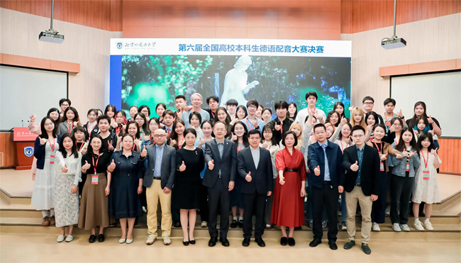 第六届全国高校本科生德语配音大赛自今年4月14日开赛以来,受到了全国高校德语学科点的高度关注,初赛共吸引全国34所高校参与,100余名来自北京各高校的员工线下观看决赛。本次大赛不仅是北外德语专业实践教学的积极尝试,也是落实德智体美劳“五育并举”方针的举措之一。赛事为全国各高校德语学科点员工之间的交流搭建了重要平台,激励青年德语学子在实践中成长为具有家国情怀、全球视野、专业本领的复合型人才。